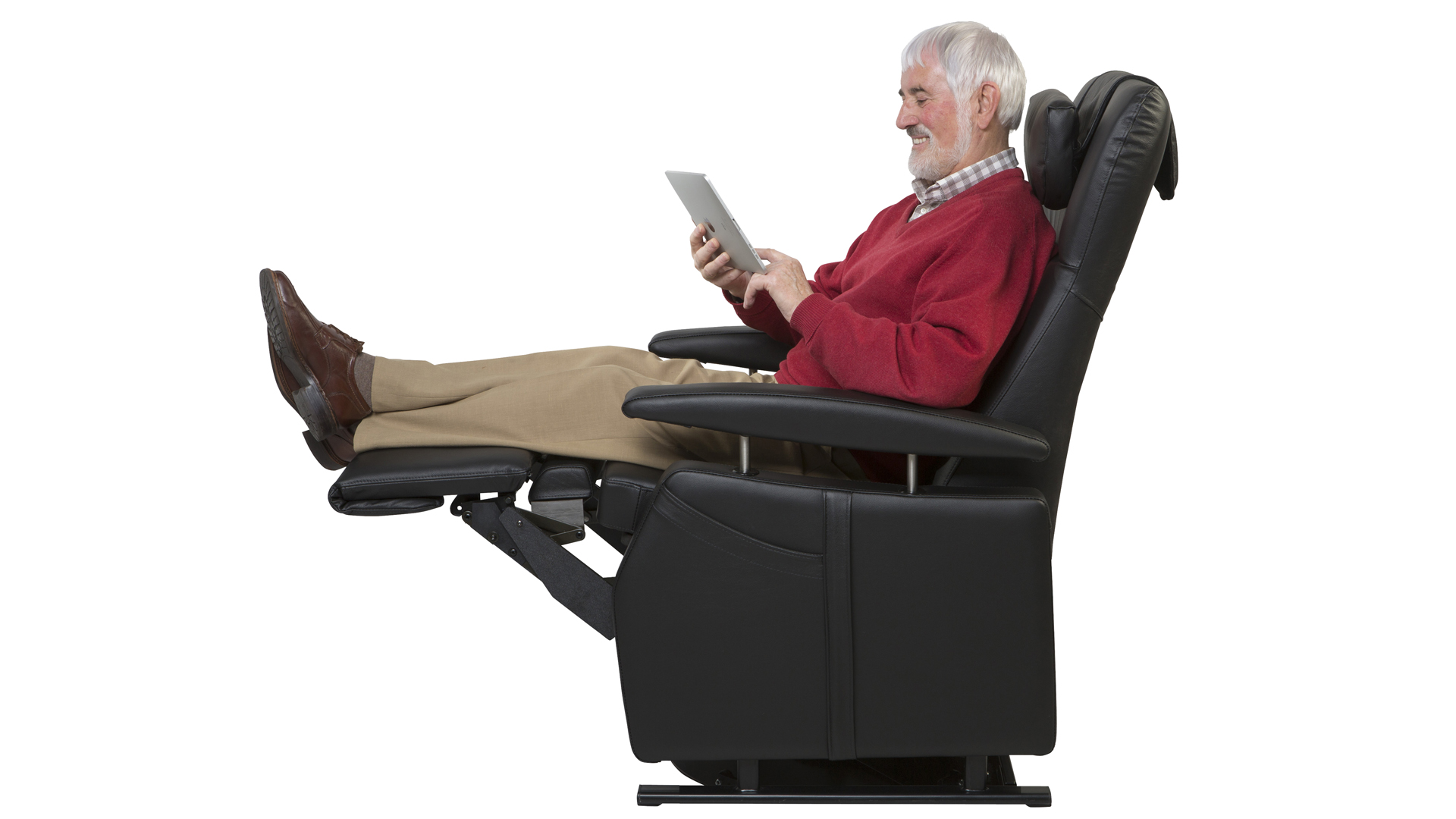 Ein VELA Stuhl mit elektrischer Höhenverstellung erledigt für Menschen, die Schmerzen beim Aufstehen haben oder deren Kraft oder Balance nachlassen, das Aufstehen ganz von alleine.