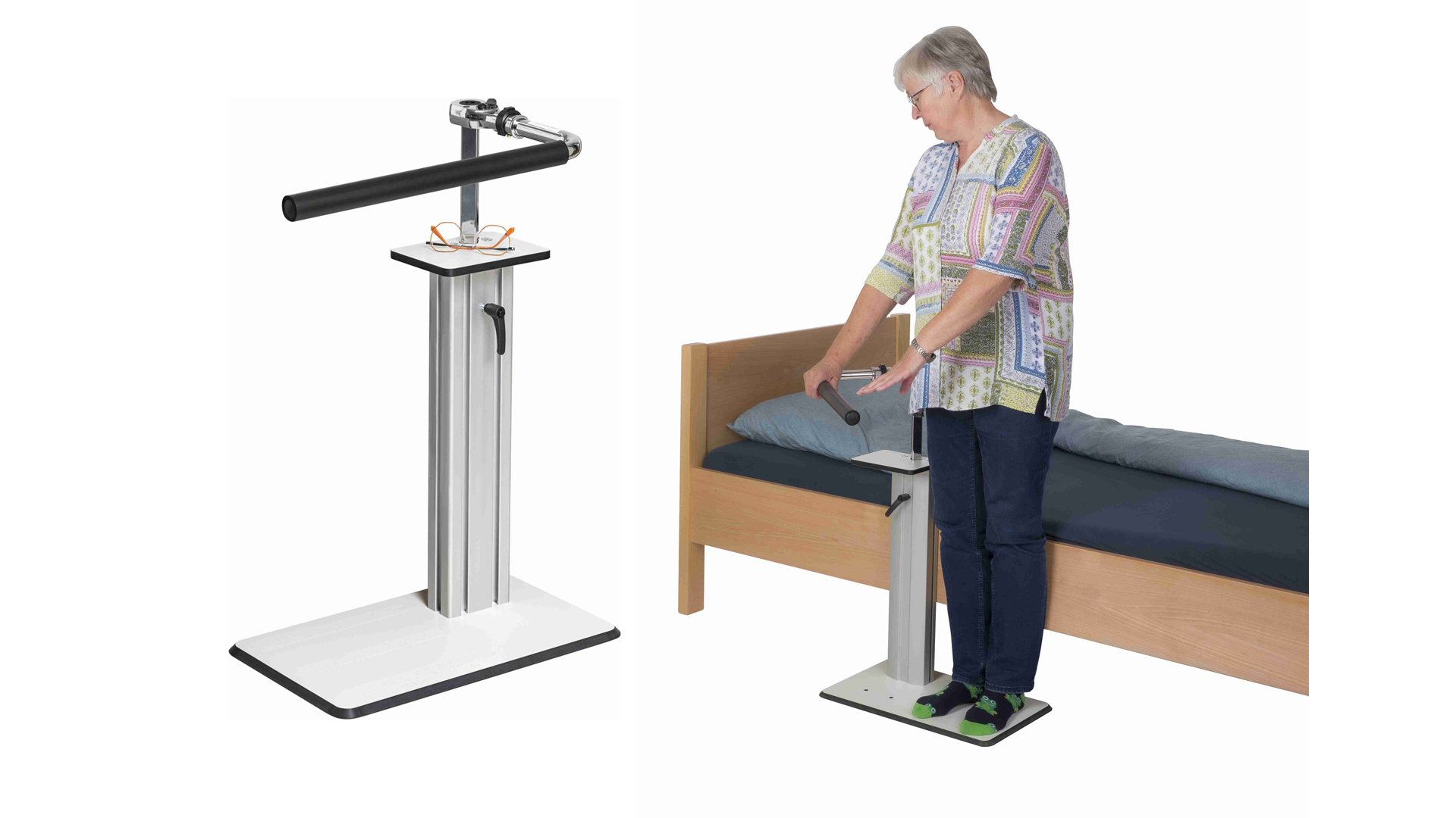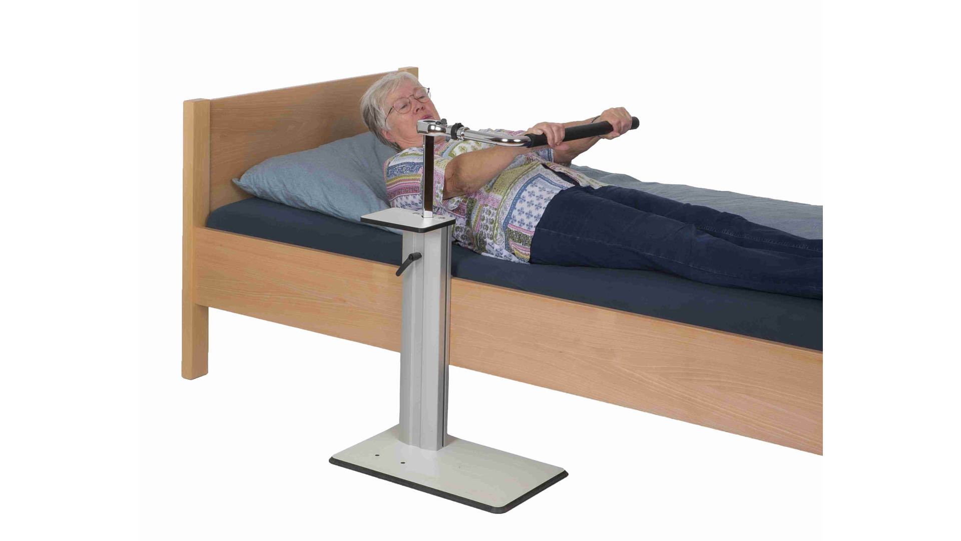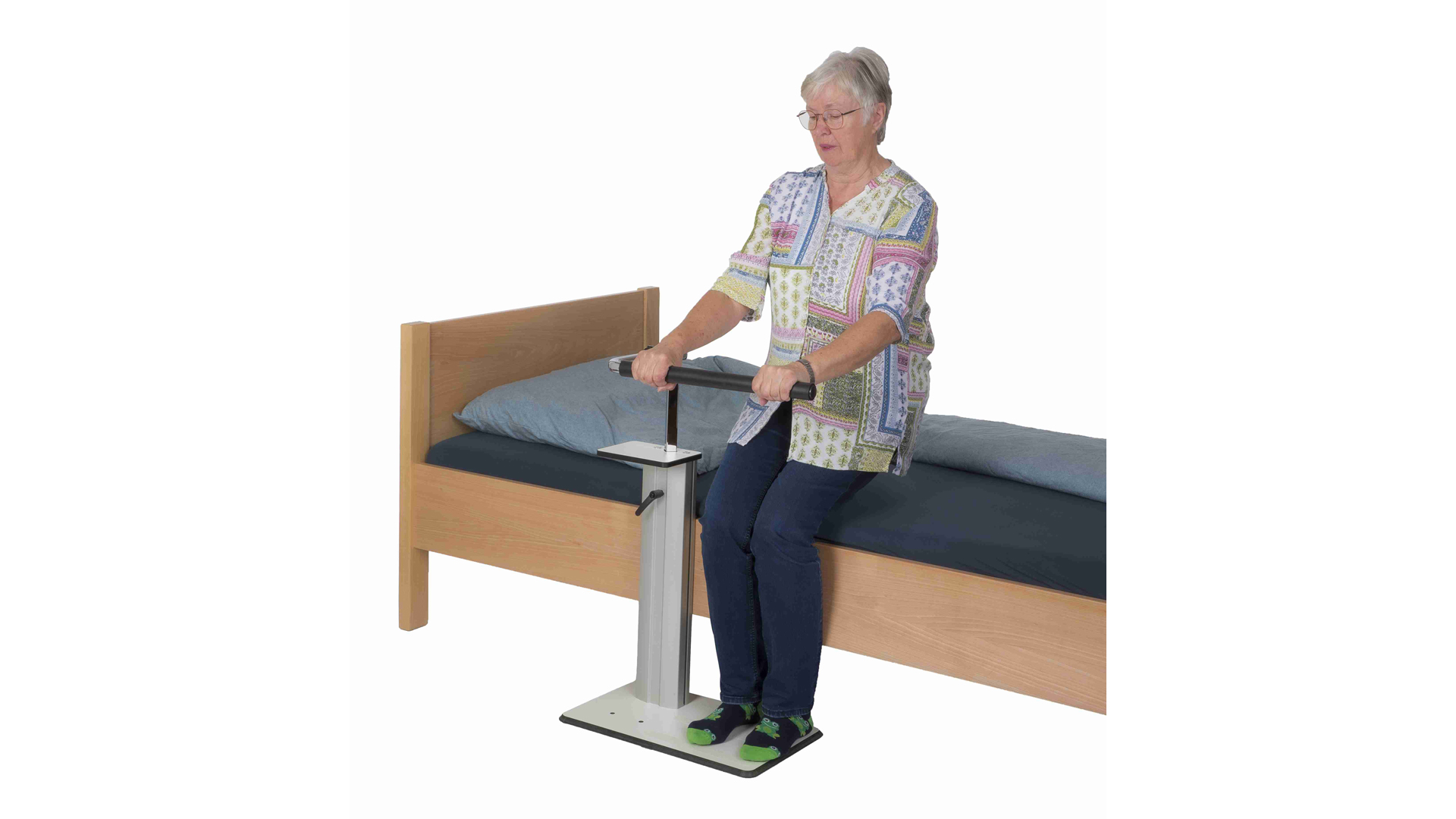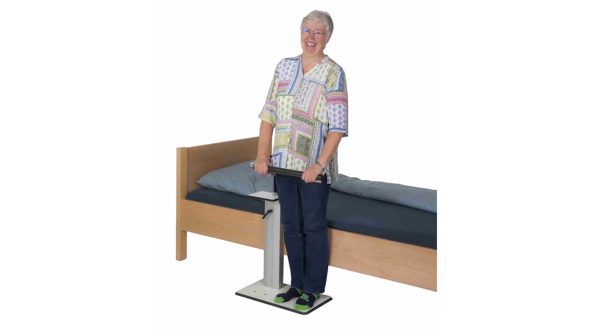 - Unterstützt den gesamten Bewegungsablauf vom selbständigen Aufrichten im Bett bis zum selbständigen Aufstehen aus dem Bett