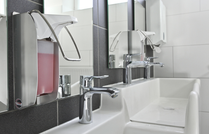 Die opalweiße Prisma-Leuchte (IP34) sorgt mit wechselbarem LED-Leuchtmittel für eine blendfreie und lumenstarke Waschplatz- und Deckenaufhellung.