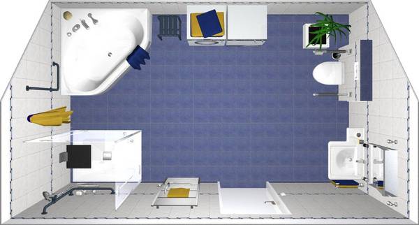Die Anordnung der Sanitärobjekte aus der Vogelperspektive