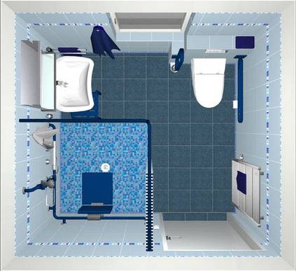 Die Anordnung der Sanitärobjekte aus der Vogelperspektive